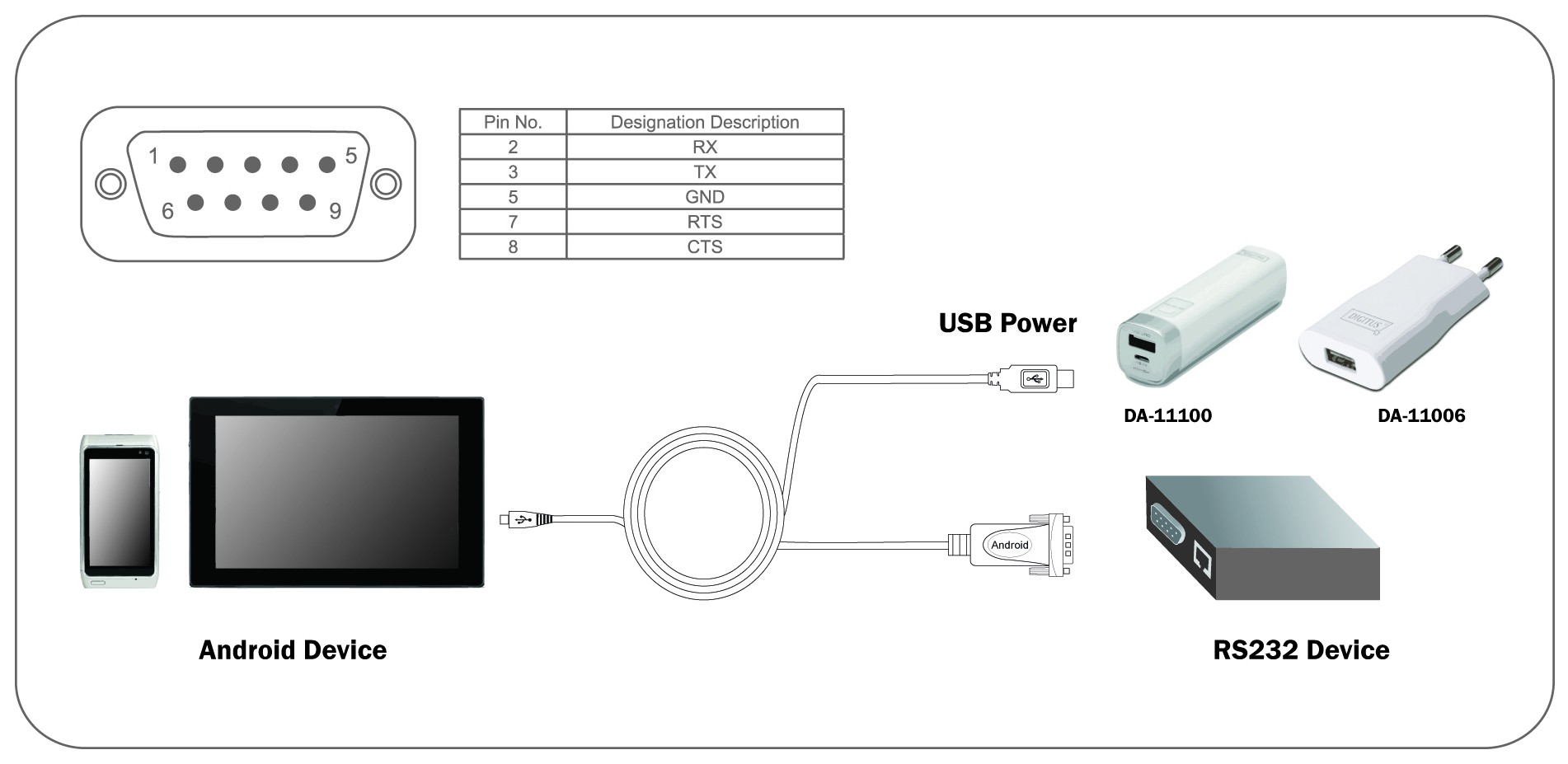 Abbildung1: Das Digitus Android zu RS232-Kabel Komfortable Wartung von Maschinen und Systemen